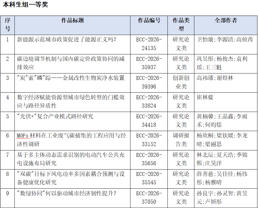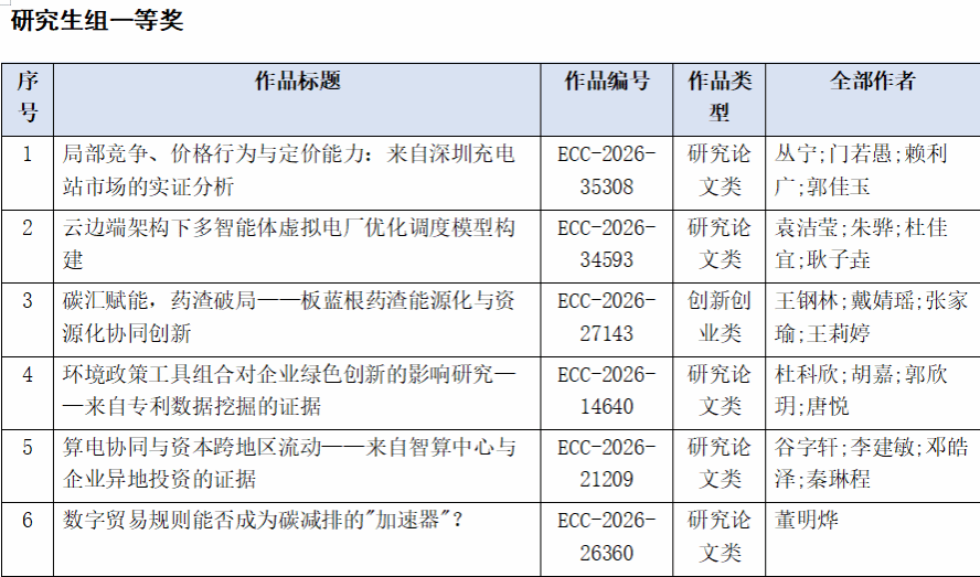 第十二届全国大学生能源经济学术创意大赛,我校报名 143项 ,提交作品 90项 ,经形式审查,有效作品 90项 。经学校组织评审,本科生组和研究生组共 47 项作品获奖。其中本科生组一等奖 9 项,二等奖 11 项,三等奖 9 项;研究生组一等奖 6 项,二等奖 5 项,三等奖 7 项。推荐一等奖与二等奖共31项作品参加北京赛区比赛。具体名单公示如下。