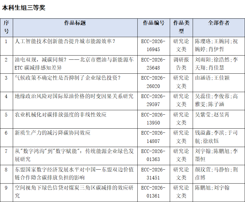 附:第十二届全国大学生能源经济学术创意大赛 中央民族大学 校赛获奖名单